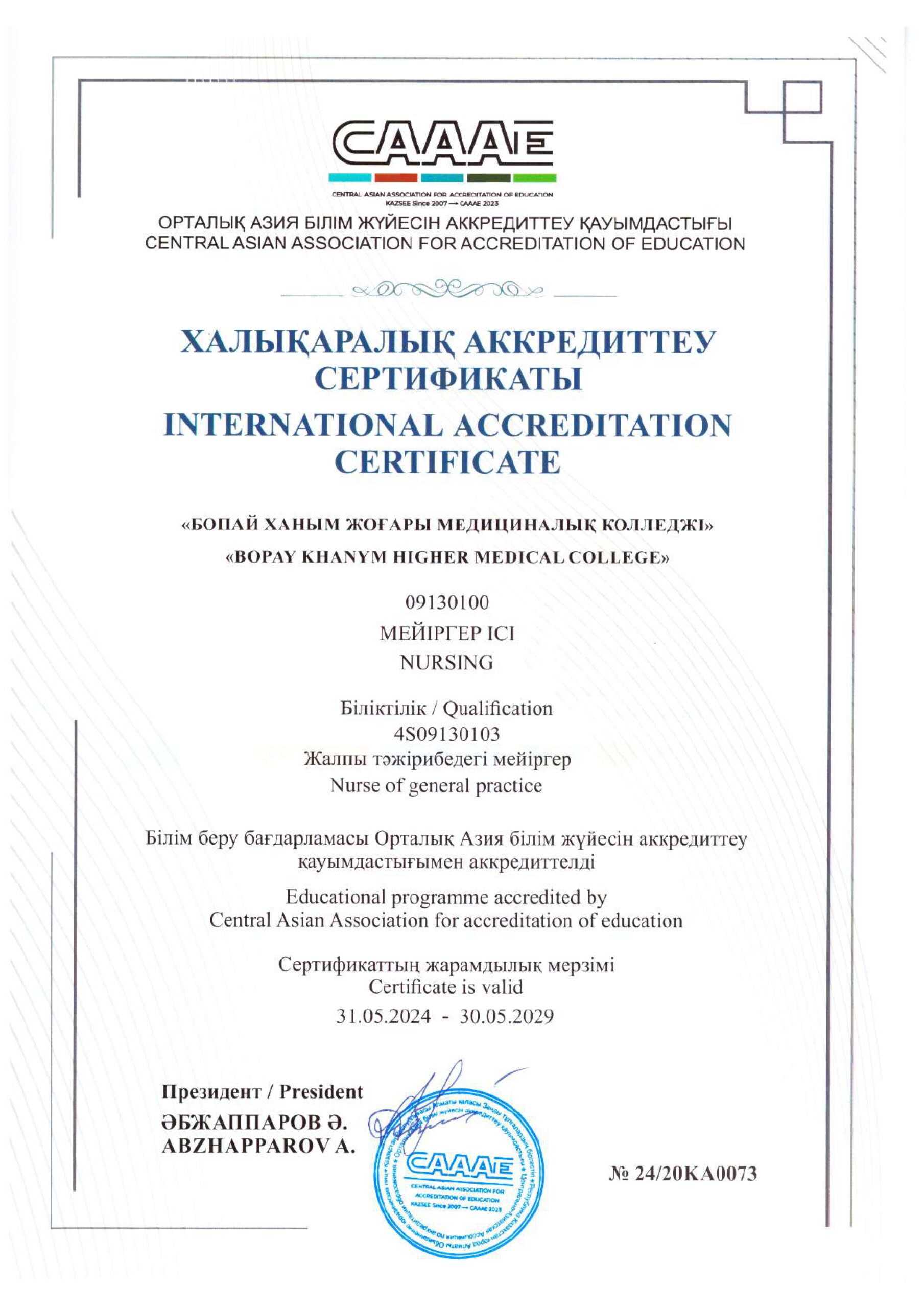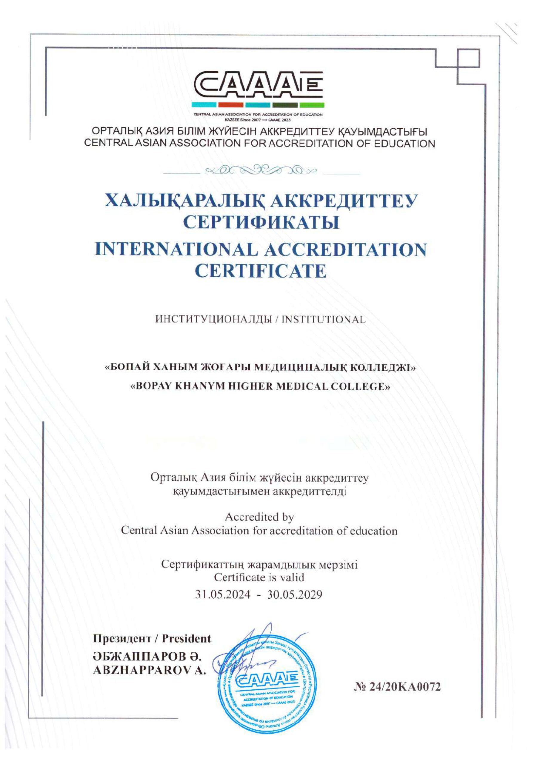 Аккредиттеу - Бопай ханым жоғары медициналық колледжі