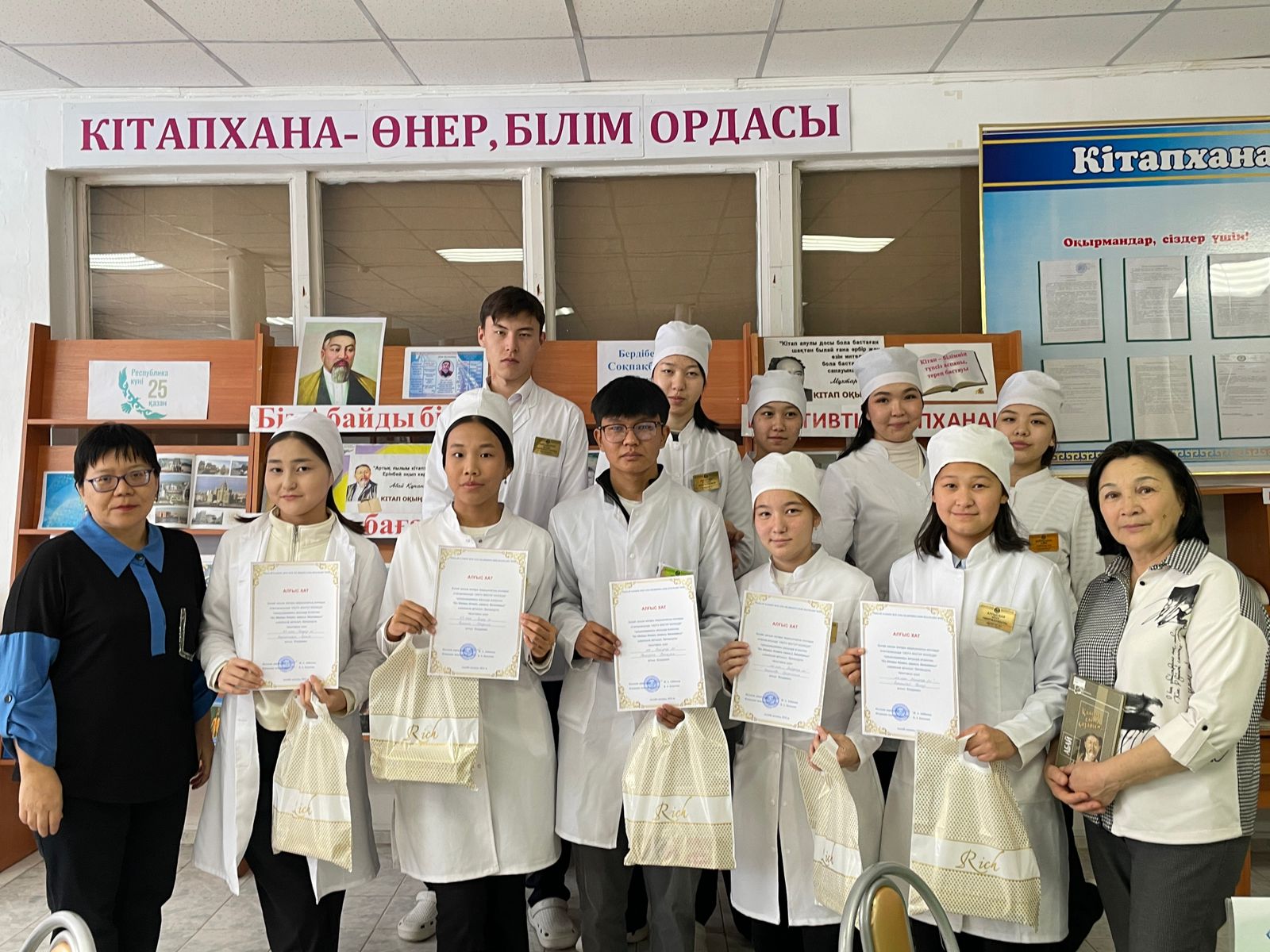 2024 жылдың 17 қазанында “Оқуға құштар колледж” жоба аясында Бопай ханым жоғары медициналық колледж кітапханасында «Мейіргер ісі» мамандығының 102 топ, 109 топ және «Емдеу ісі» 113 топ студенттерімен бірлесе “Біз Абайды білеміз, оқимыз бағалаймыз” тақырыбында әдеби аукцион өткізді.