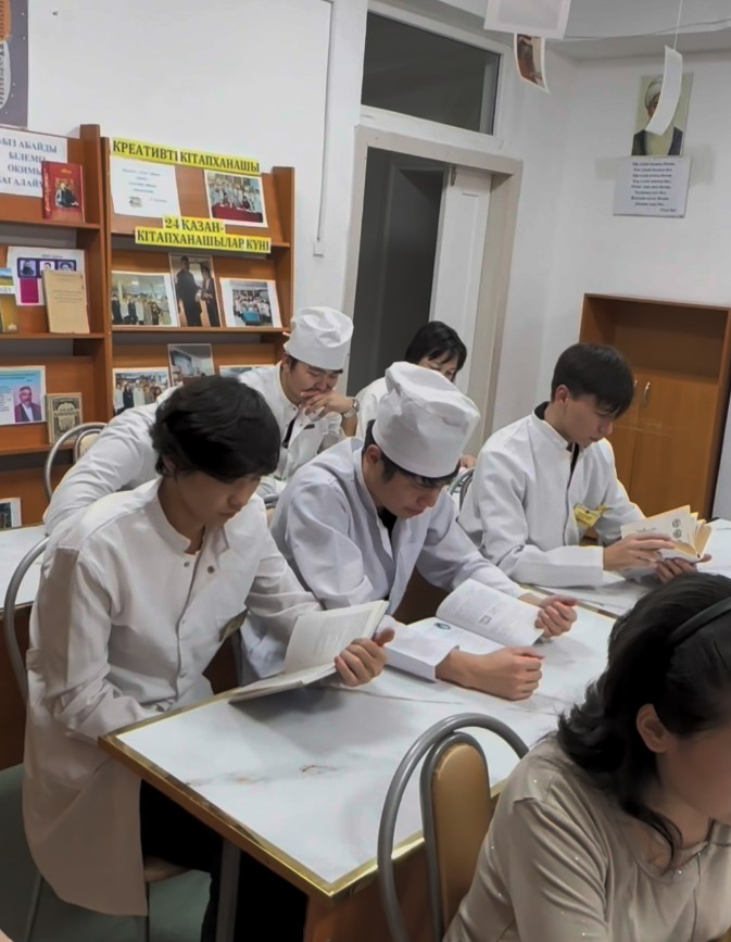 «Қазына» оқырмандар клубының мүшелері мен 323 «Емдеу ісі» тобының білім алушылары бірлесе отырып,кураторы Н.Асылхан 23 қазан күні колледж кітапханасында «Кітапханашы- демек креативті» атты өзін-өзі басқару күні өткізді.