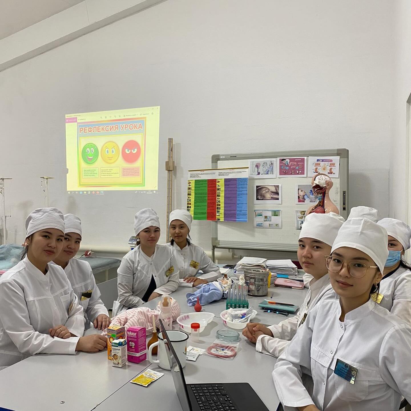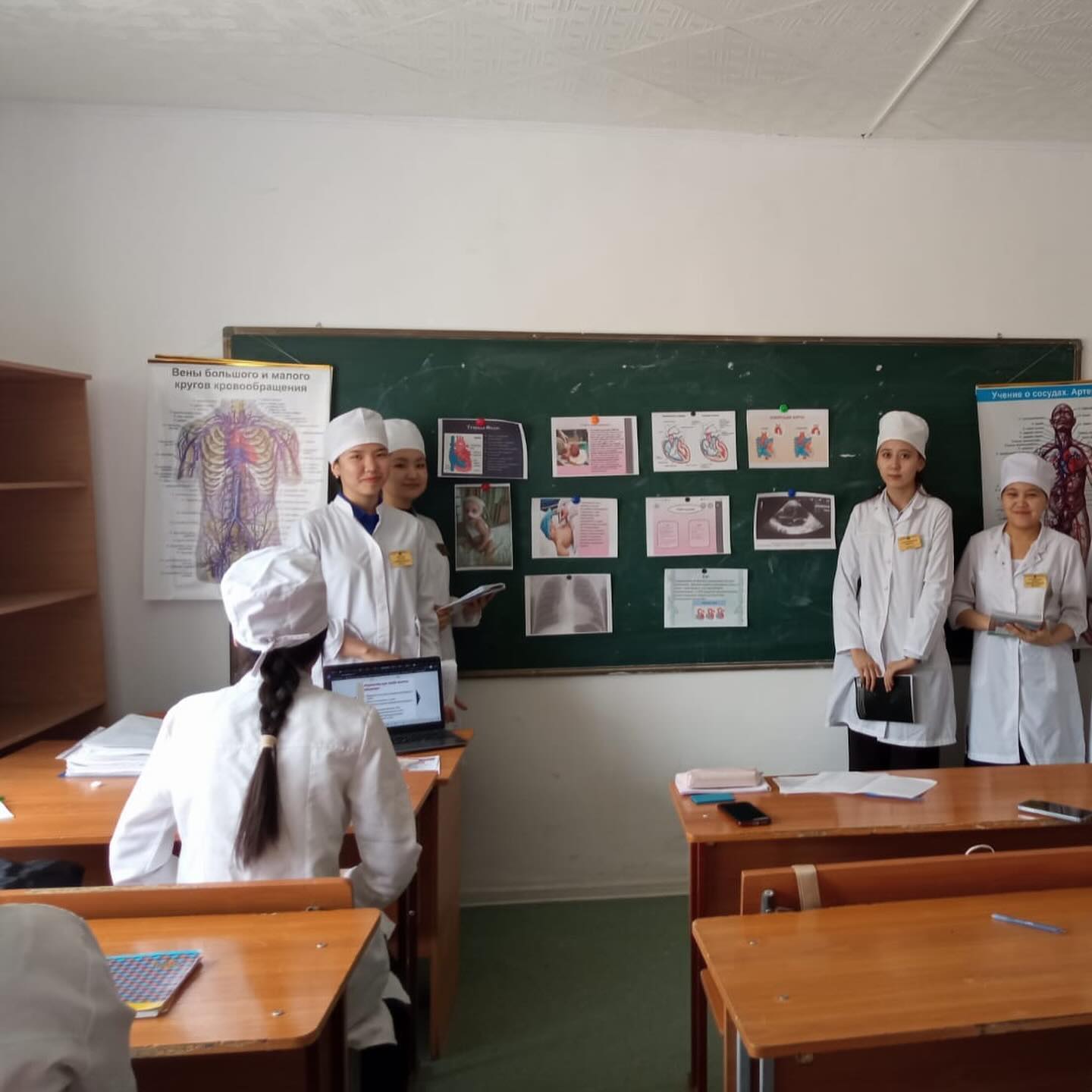 «Жалпы кәсіптік пәндер» циклдік-әдістемелік бірлестігінің төрайымы, арнайы пәндер оқытушысы Махашова Адеми Махмутовна «Сестринское дело» 201 тобына «Асқазан, ішек аурулары», «Мейіргер ісі» 203 тобына «Туа бітті жүрек ақаулары» тақырыбында практикалық сабақтарын өткізді.