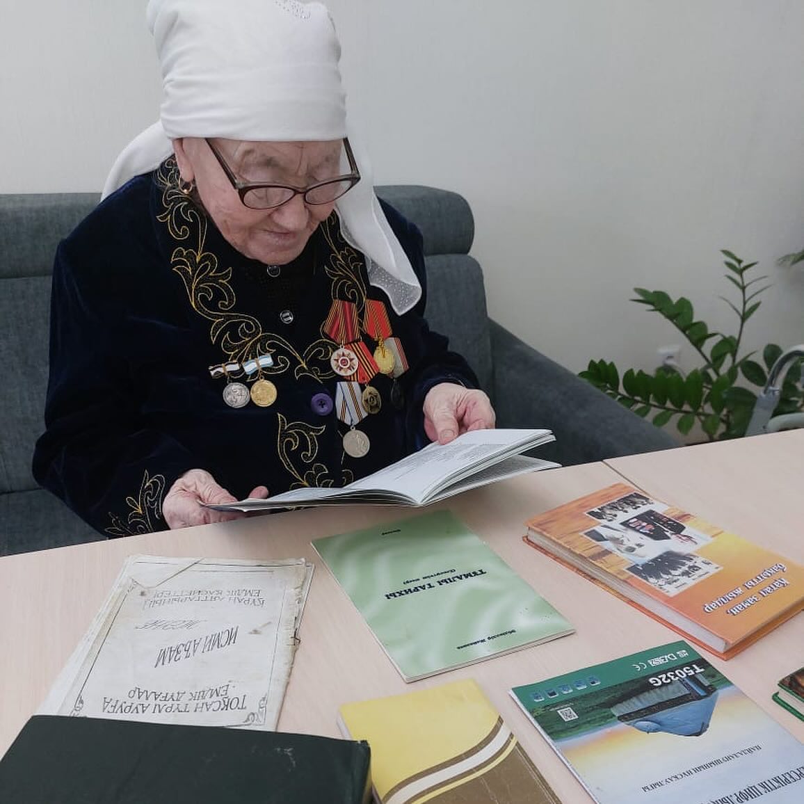 1950 жылдарда Ақтөбе педагогика училищесінің «Кітапхана ісі» мамандығын тамамдаған қазіргі таңда 90-ның үстіне шығып немере,шөбере сүйіп бақытты әже атанып отырған Бахатова Үрзия әжеміз осы күнге газет,журнал оқып шөберелеріне қызықты ертегілер айтып беріп отырады.
