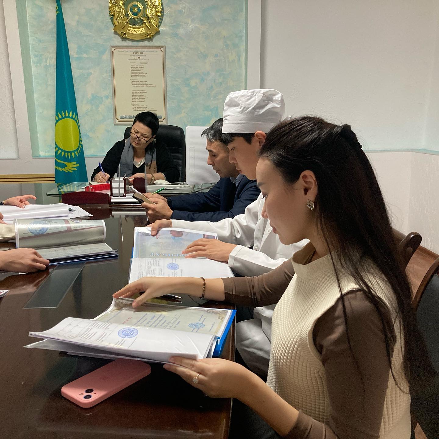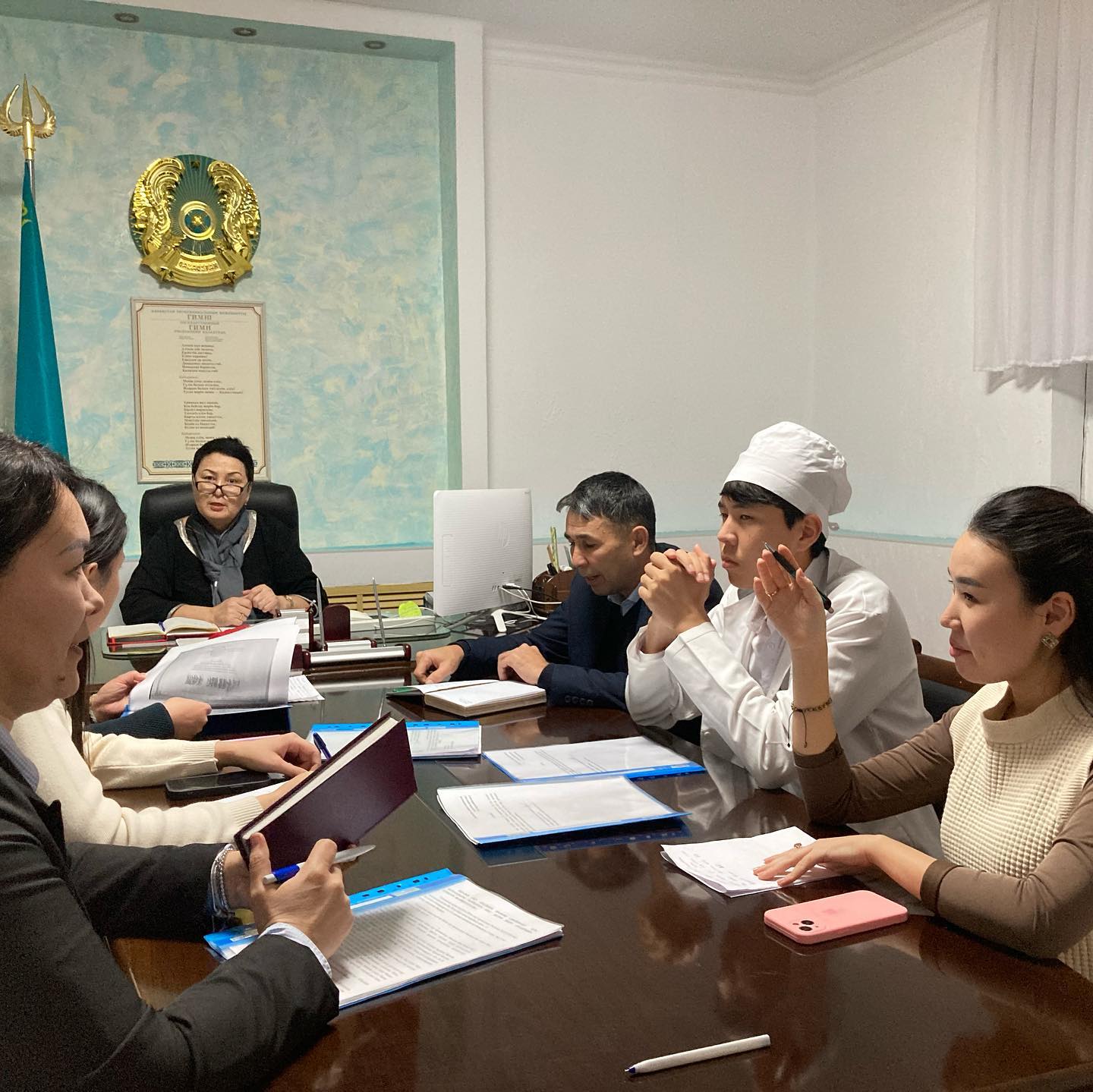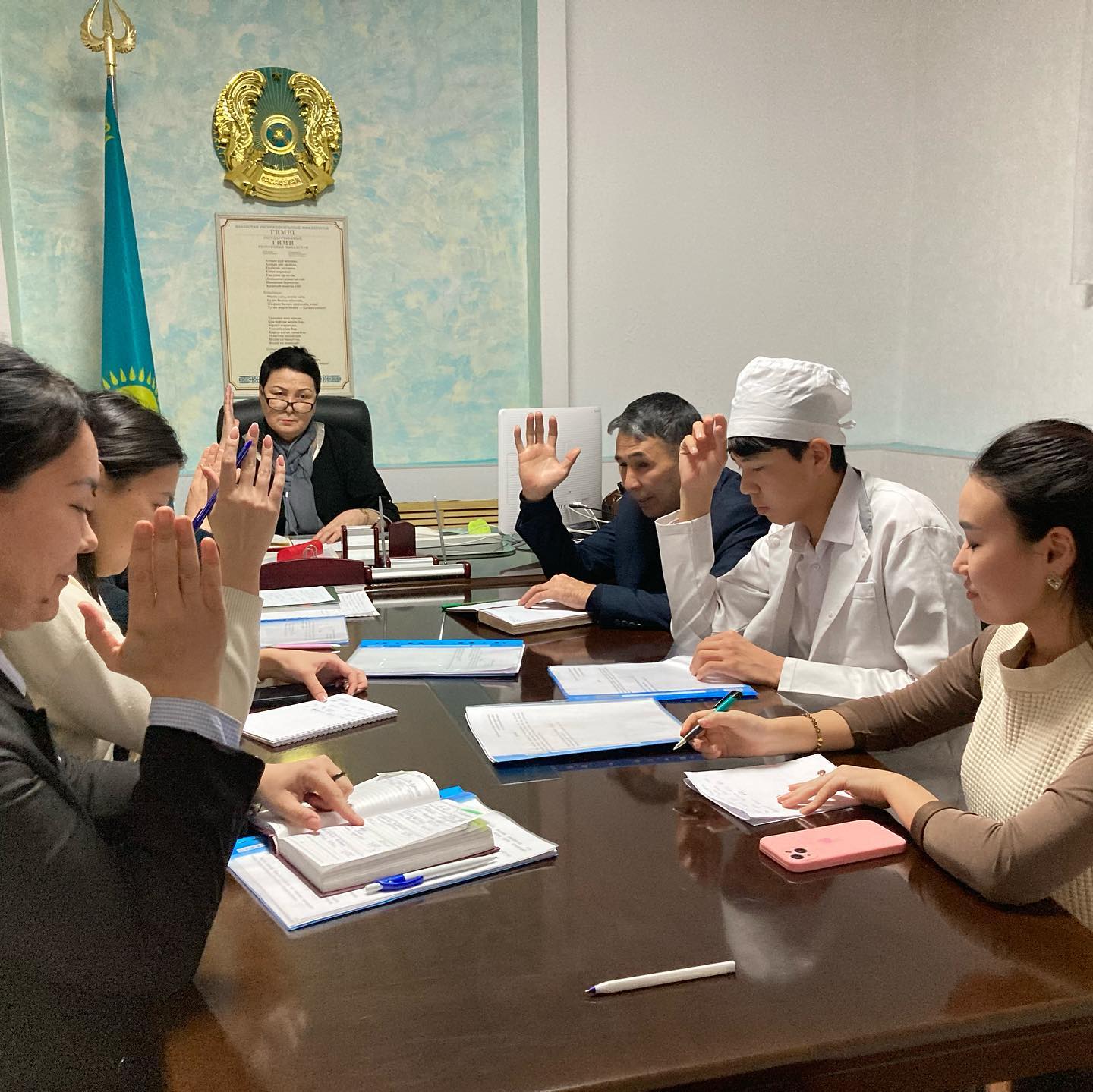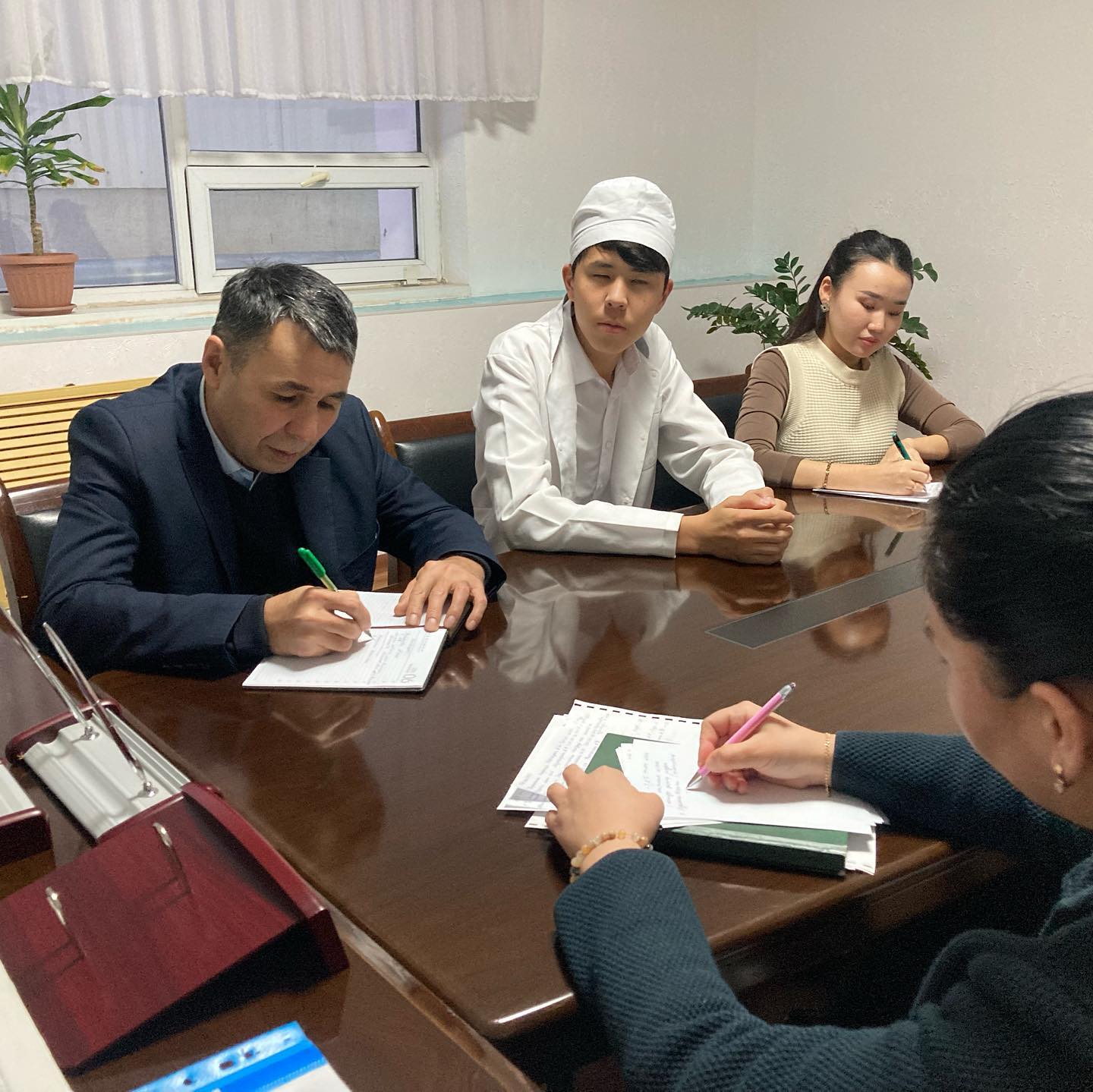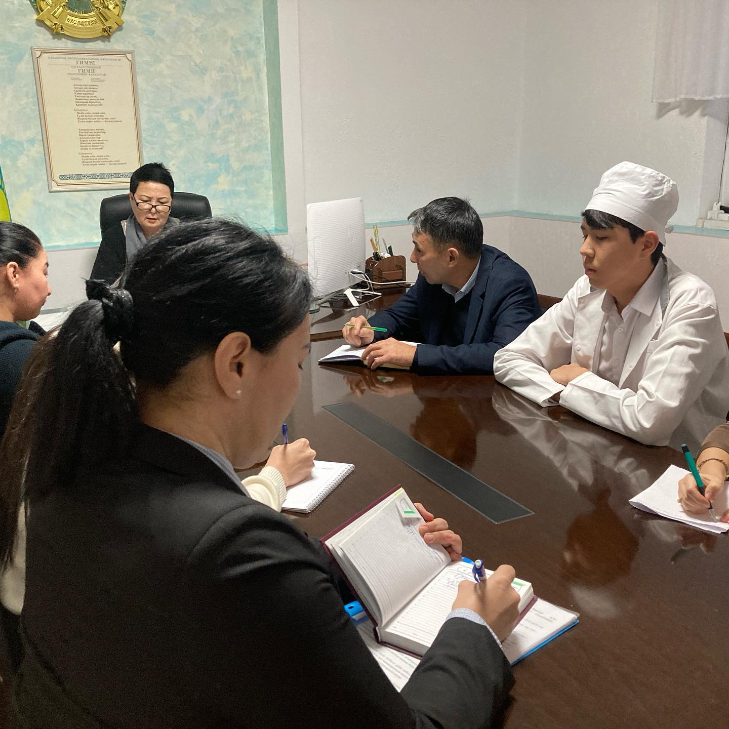 В состав комиссии вошли Нурмаганбетова М. С.-директор колледжа, председатель комиссии; Сейтенов Е. А.-заместитель директора по воспитательным и социальным вопросам; Каршыгина Г. Е.-заместитель директора по учебно-методической работе; Агатаева Т. Б.-заведующий отделом «Сестринского дела»; Урумбаева А. Н. — главный бухгалтер; С. Жумалыевна – социальный педагог; Д. А. Куанышбаев-председатель комитета по делам молодежи; судил: Б. А. Наргалиев-член студенческого совета. Члены комиссии рассмотрели портфолио 4 (четырех) студентов, подавших заявки на поступление в госзаказ. При проведении конкурса на получение вакантных образовательных грантов при одинаковых показателях среднего балла успеваемости за весь период обучения имеются только оценки а, А- («отлично»), затем А, А- («отлично») — в+, В, В — («хорошо»), и обучающиеся, активно участвующие в воспитательных, культурных, спортивных, других мероприятиях, дети из малообеспеченных семей, учитывали, что преимущественное право имеют.